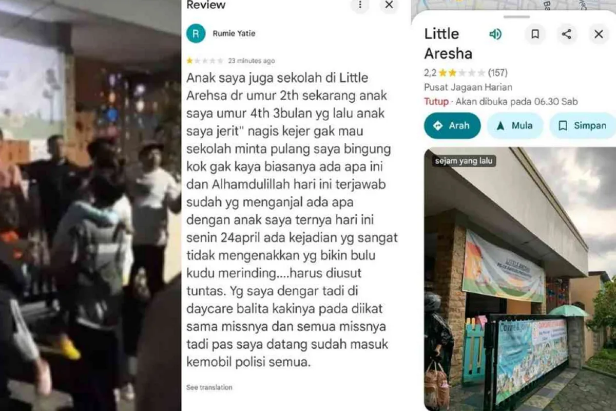Dugaan kekerasan terhadap anak di tempat penitipan Little Aresha, Sorosutan, Umbulharjo, Kota Yogyakarta, memicu reaksi luas di media sosial pada Jumat (24/4). Dampaknya, lokasi daycare tersebut sempat dibanjiri ulasan warganet di Google Maps sebelum akhirnya tidak lagi bisa diakses.