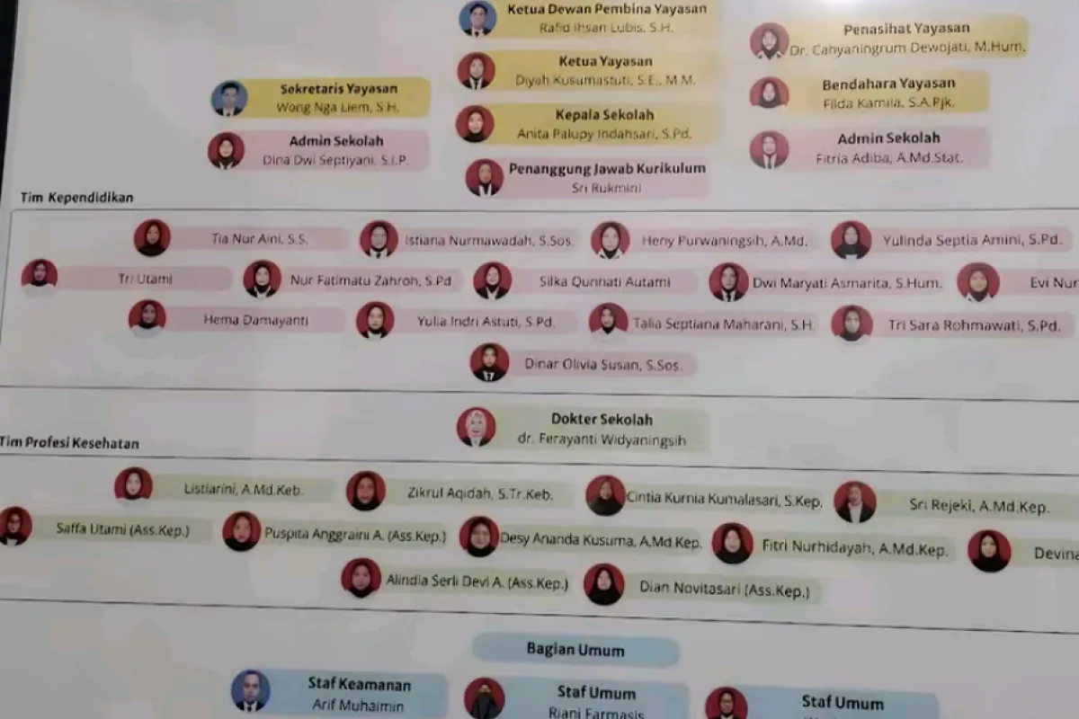 Informasi yang beredar menunjukkan jajaran pimpinan yayasan diisi oleh figur dengan latar belakang pendidikan tinggi.